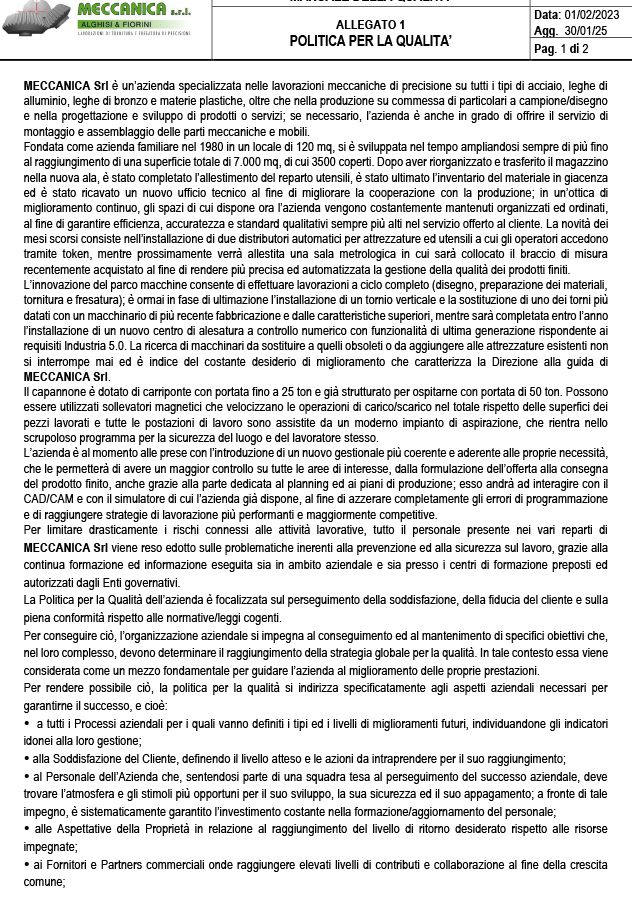 MECCANICA SRL ALGHISI E FIORINI P.Iva: 02430320982- Via Cavallera 10 Darfo Boario Terme (Brescia) Tel. 0364.532721 - info@torneriaalghisi.it 2018 Euroservice - Privacy Policy